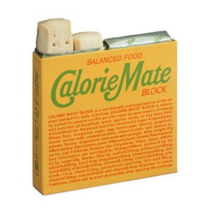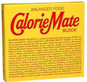 発売当初からのラインナップ 固形タイプのカロリーメイトでは、チーズ味と並んで最古参のロングセラーです。スナック菓子風ですが、意外としっとりしており、飲み物が無くても食べられます。1本100kcalで、1箱だと4本入なので400kcalとなります。