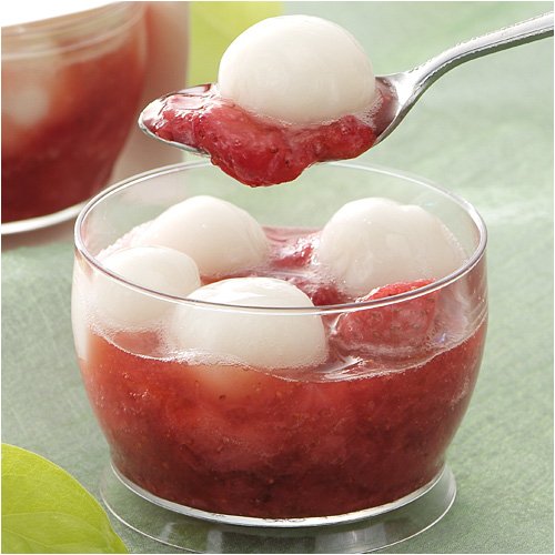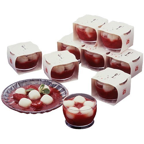 原材料:苺・砂糖・白玉粉・トレハロース・澱粉・増粘多糖類・酵素(大豆由来、卵由来)・乳化剤・安定剤(タマリンドガム)(原材料の一部に牛由来、乳糖を含む)